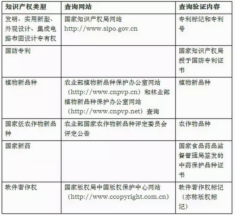 (2)知识产权有效性的查询验证方式: