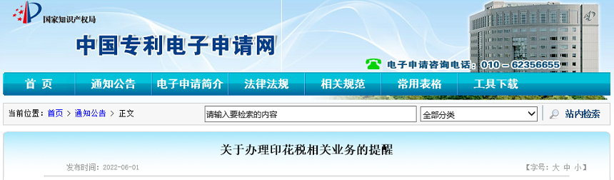 为配合《中华人民共和国印花税法》的实施,国家知识产权局自2022年7月1日(含)起,将停止涉及专利证书和集成电路布图设计登记证书印花税的代征业务。