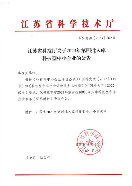 江苏省2023年第4批入库科技型中小企业名单公告企业清单.pdf